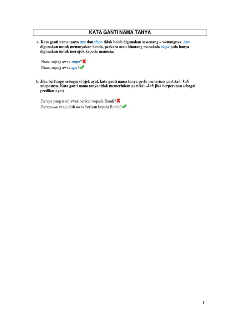 Kata Ganti Nama Tanya / 52 contoh kata ganti dalam bahasa indonesia, disajikan lengkap dalam contoh kalimat yang super banyak, agar lebih mudah dipelajari dan dipahami.. (1973), kata ganti nama boleh menggantikan nama khas. Isu penyalahgunaan kata ganti nama ia bukanlah suatu yang baharu dalam kalangan pengguna bahasa. Nota kata ganti nama kata ganti nama. (apakah / siapakah ) yang menjadi ketua pengawas sekolah tahun ini? Apa bertanya tentang benda apakah nama ibu negeri johor?