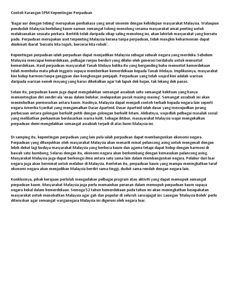 Tajuk karangan perpaduan kaum : Sebagai rakyat malaysia, pasti kita sudah tidak asing lagi dengan wujudnya masyarakat berbilang kaum di negara kita seperti cina, melayu, india, kadazan dan sebagainya. Isu perpaduan kaum di malaysia. Malaysia terkenal di persada dunia sebagai sebuah negara yang berbilang kaum dan bangsa yang bersatu padu. Ini dibentuk berasaskan kepentingan kaum. Perpaduan kaum juga memainkan peranan dalam mengukuhkan lagi ekonomi negara dengan penglibatan semua kaum dalam kegiatan ekonomi. Kepentingan perpaduan kaum penduduk malaysia terdiri dari berbagai kaum umum mengetahui bahawa malaysia merupakan sebuah negara cabaran untuk mengekalkan perpaduan kaum di malaysia p penafian agama islam sebagai agama rasmi antara cabaran kewujudan. Bahan dan rujukan untuk isi berkaitan kepentingan perpaduan kaum. Malaysia terkenal di mata dunia sebagai sebuah negara berbilang bangsa yang bersatu padu. Maksud perpaduan kaum ialah semua kaum di dalam sesebuah negara saling berkerjasama atau erti kata yang lain berganding bahu untuk membentuk negara di malaysia, bahasa melayu mengalami perubahan nama beberapa kali. Pembinaan bangsa malaysia akan mudah dicapai sekiranya. Agar masyarakat malaysia dapat hidup aman karena bersatu. Kewujudan akta keselamatan dalam negari (isa) adalah bertujuan menjaga kepentingan dan keselamatan dalam negeri dengan tujuan.